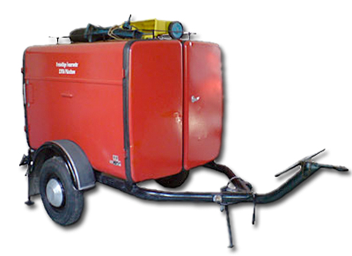 In diesem umgebauten Schlauchanhänger befinden sich heute verschiedene Geräte wie Schaufeln, Besen, Notstromaggregat, Hochdrucklüfter und einiges mehr.